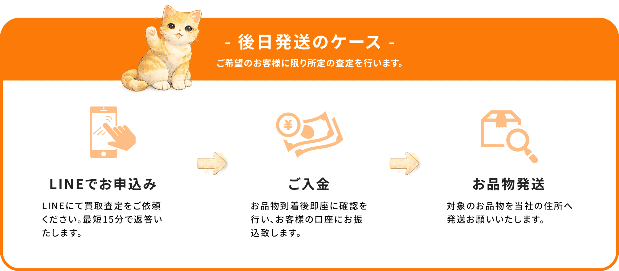 買取成立後は、ご郵送のみで手続きが完了し、確認次第、